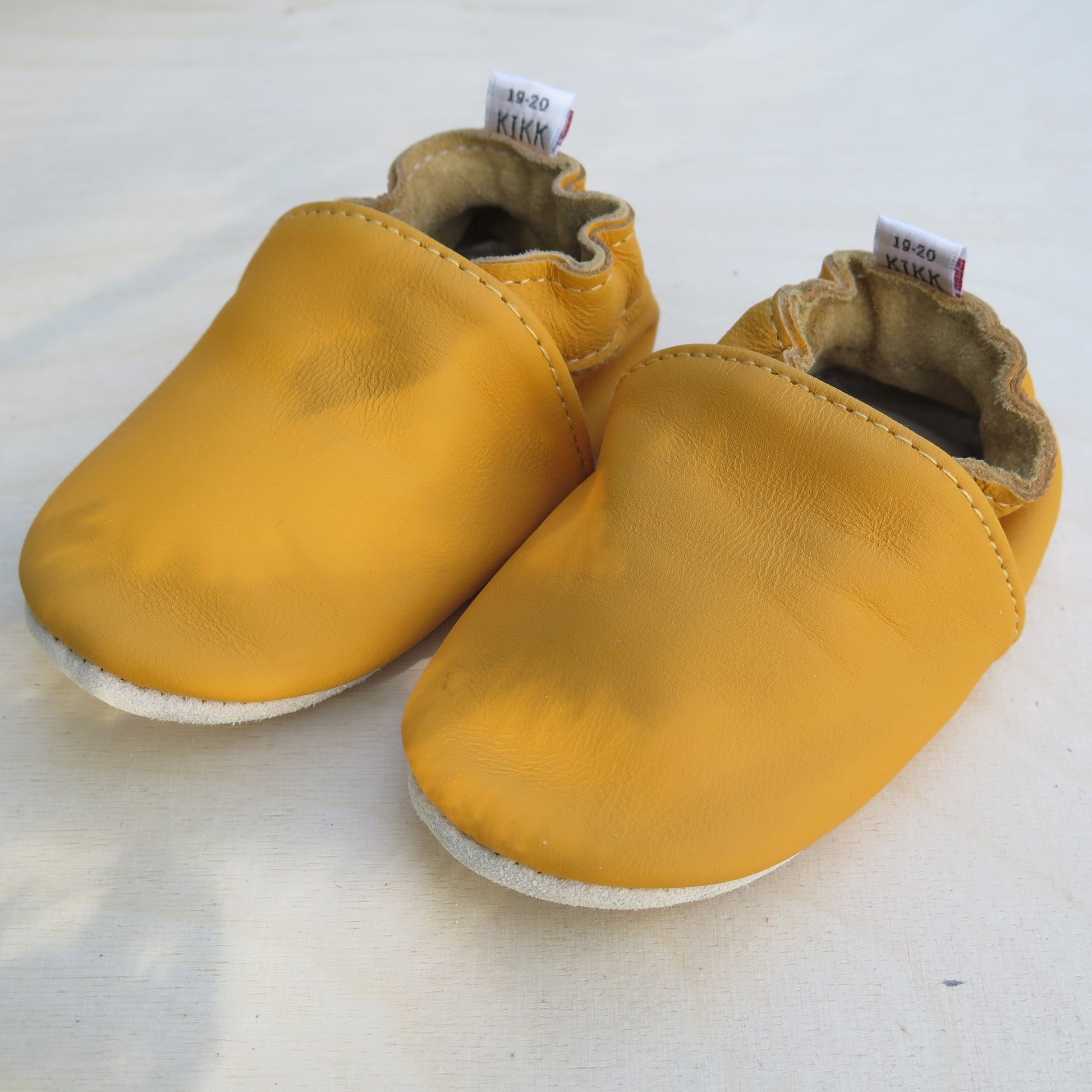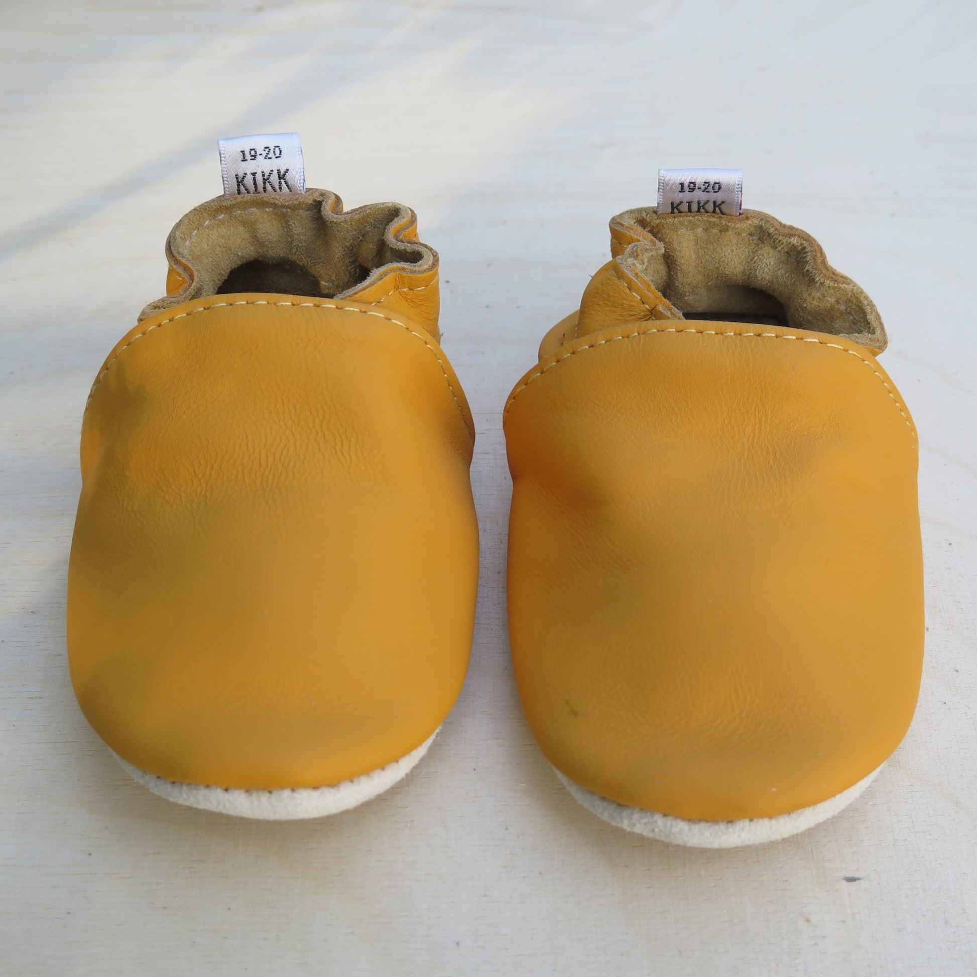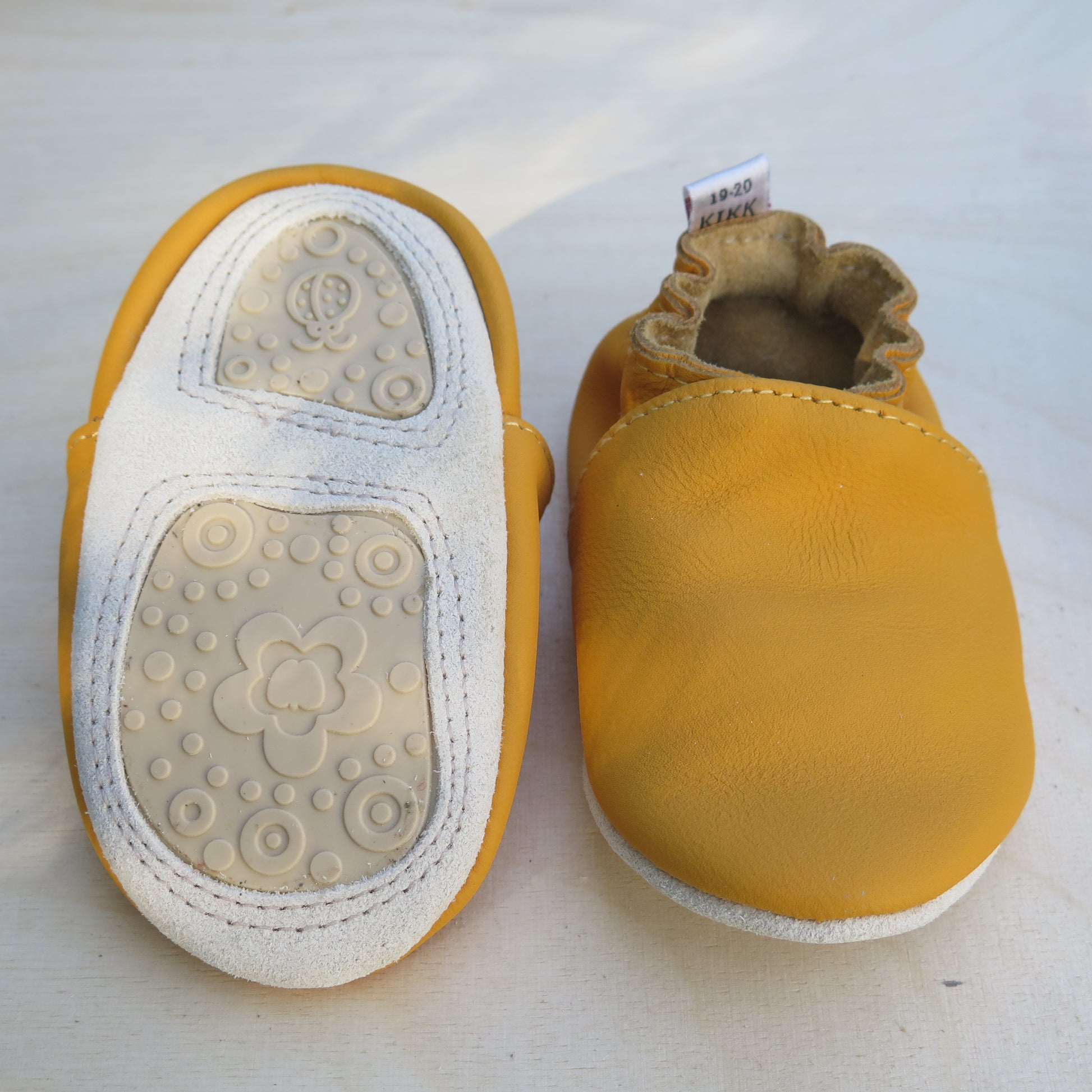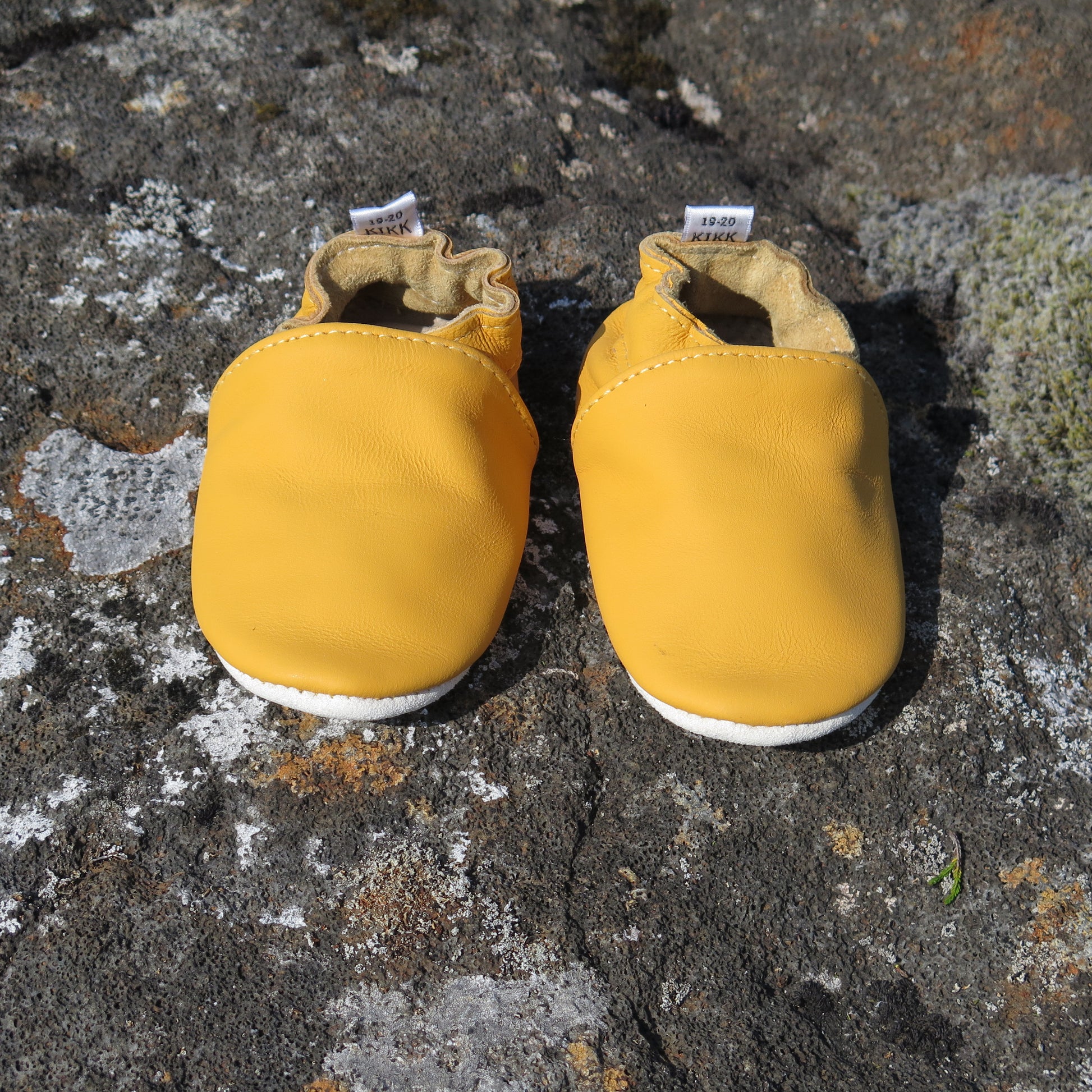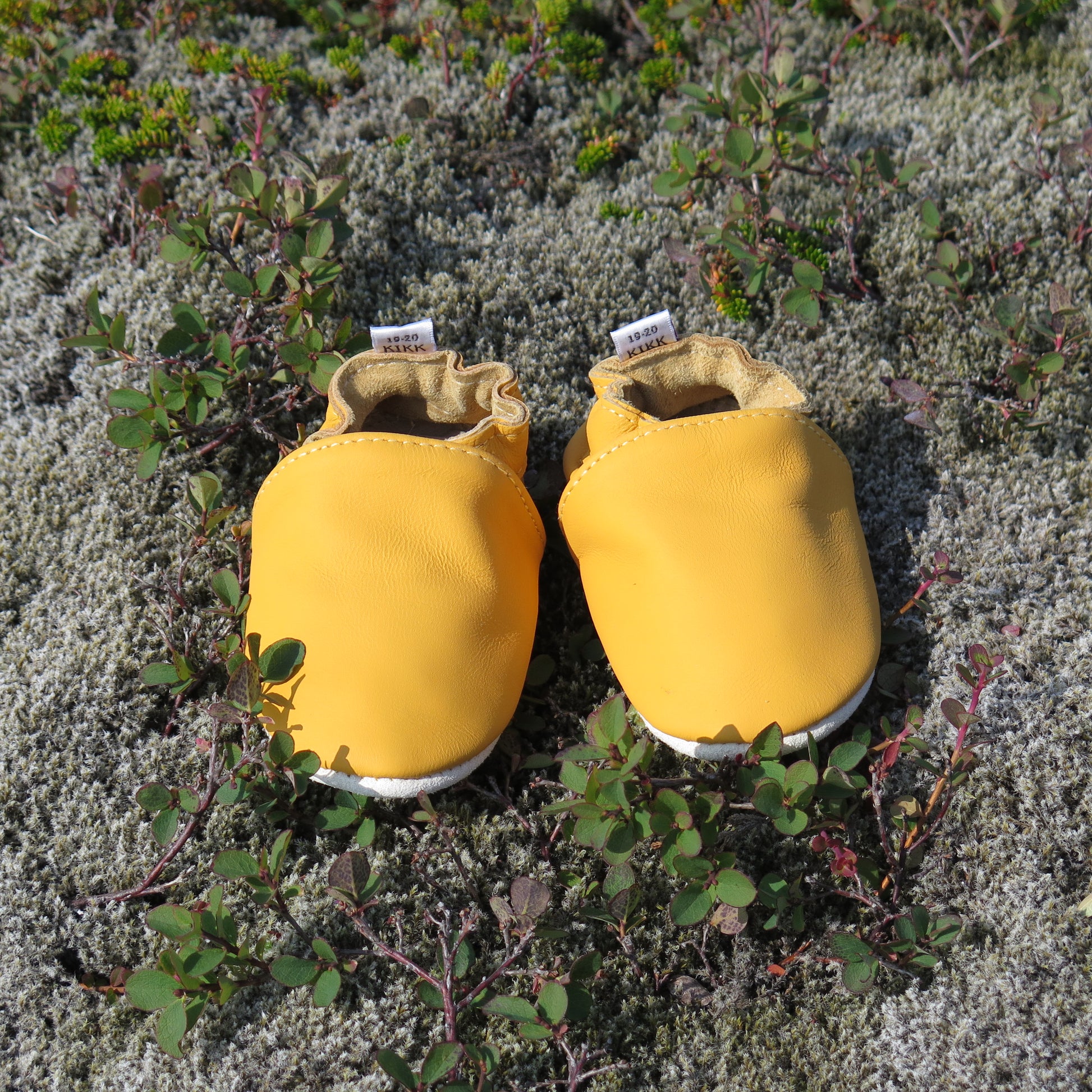 Leðurskór með gúmmí sóla. 6-12 mánaða – stærð 17-18 – 11,5 cm 9-18 mánaða – stærð 19-20 – 12,5 cm 1-2 ára – stærð 21-22 – 13,5 cm 1,5-3 ára – stærð 23-24 – 14,5 cm 2,5-4 ára – stærð 25-26 – 16,5 cm KIKK Reykjavík ungbarnaskórninr eru framleiddir úr mjúku geitaleðri. Þeir haldast vel á fæti og sólinn er stamur. Best er að hreinsa skóna með því að væta sólann og bursta rússkinnið varlega. Skóna má þrífa með blautri tusku.