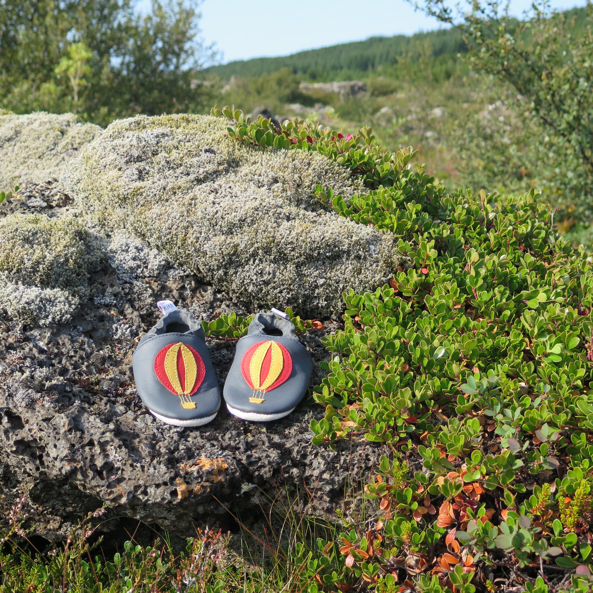 Leðurskór með gúmmí sóla. 6-12 mánaða – stærð 17-18 – 11,5 cm 9-18 mánaða – stærð 19-20 – 12,5 cm 1-2 ára – stærð 21-22 – 13,5 cm 1,5-3 ára – stærð 23-24 – 14,5 cm 2,5-4 ára – stærð 25-26 – 16,5 cm KIKK Reykjavík ungbarnaskórninr eru framleiddir úr mjúku geitaleðri. Þeir haldast vel á fæti og sólinn er stamur. Best er að hreinsa skóna með því að væta sólann og bursta rússkinnið varlega. Skóna má þrífa með blautri tusku.