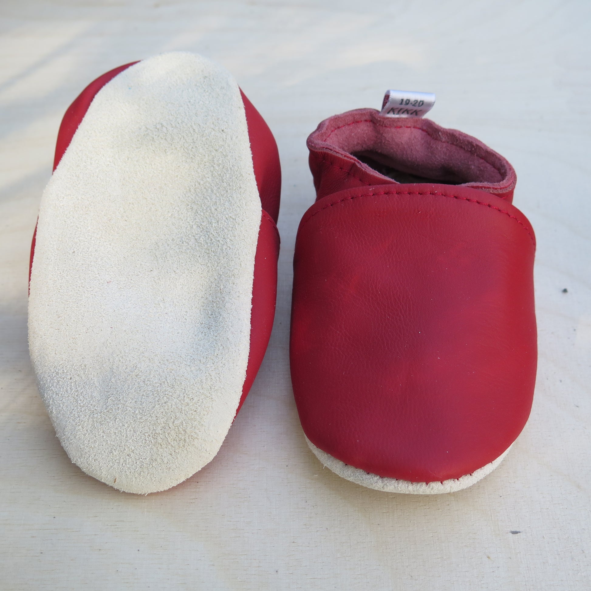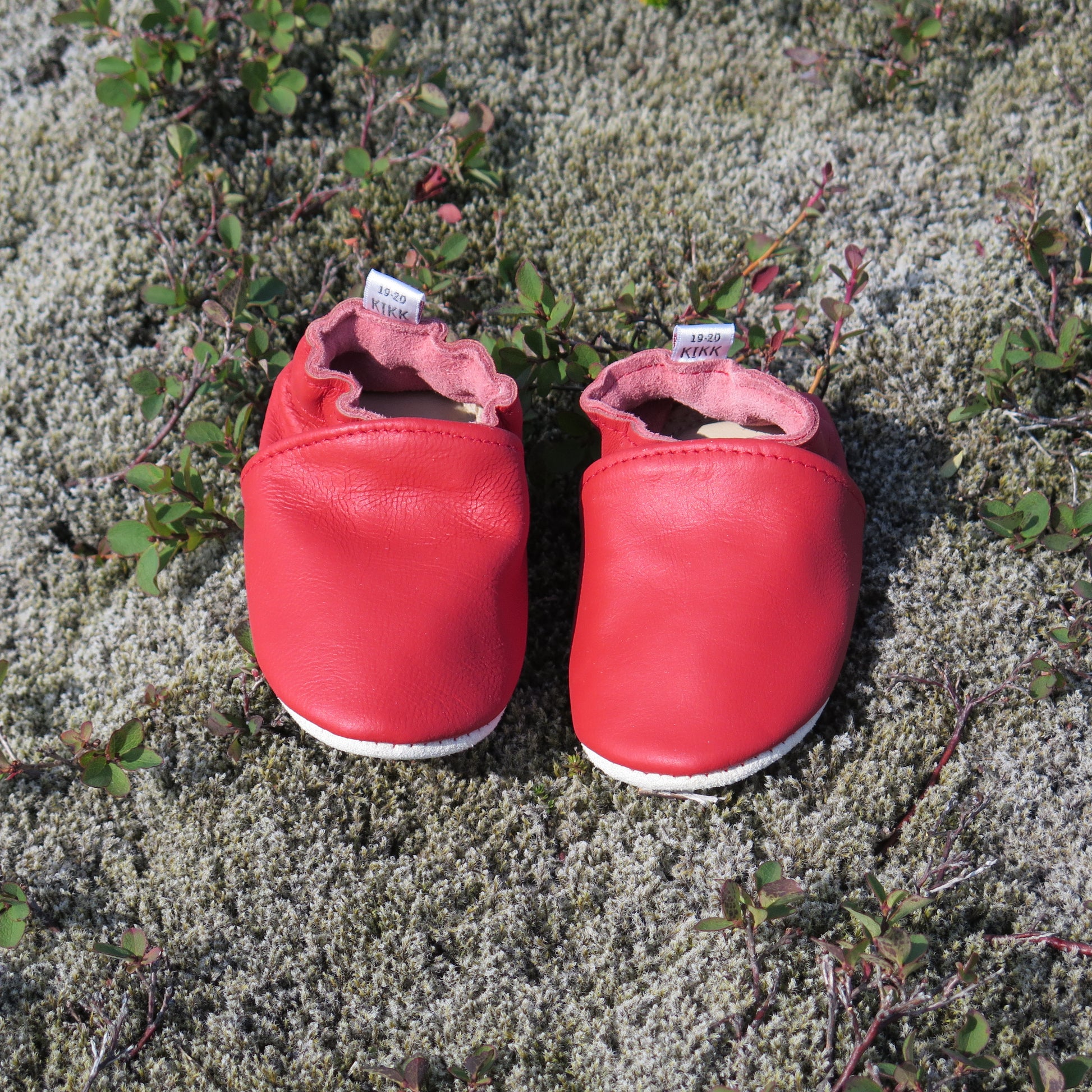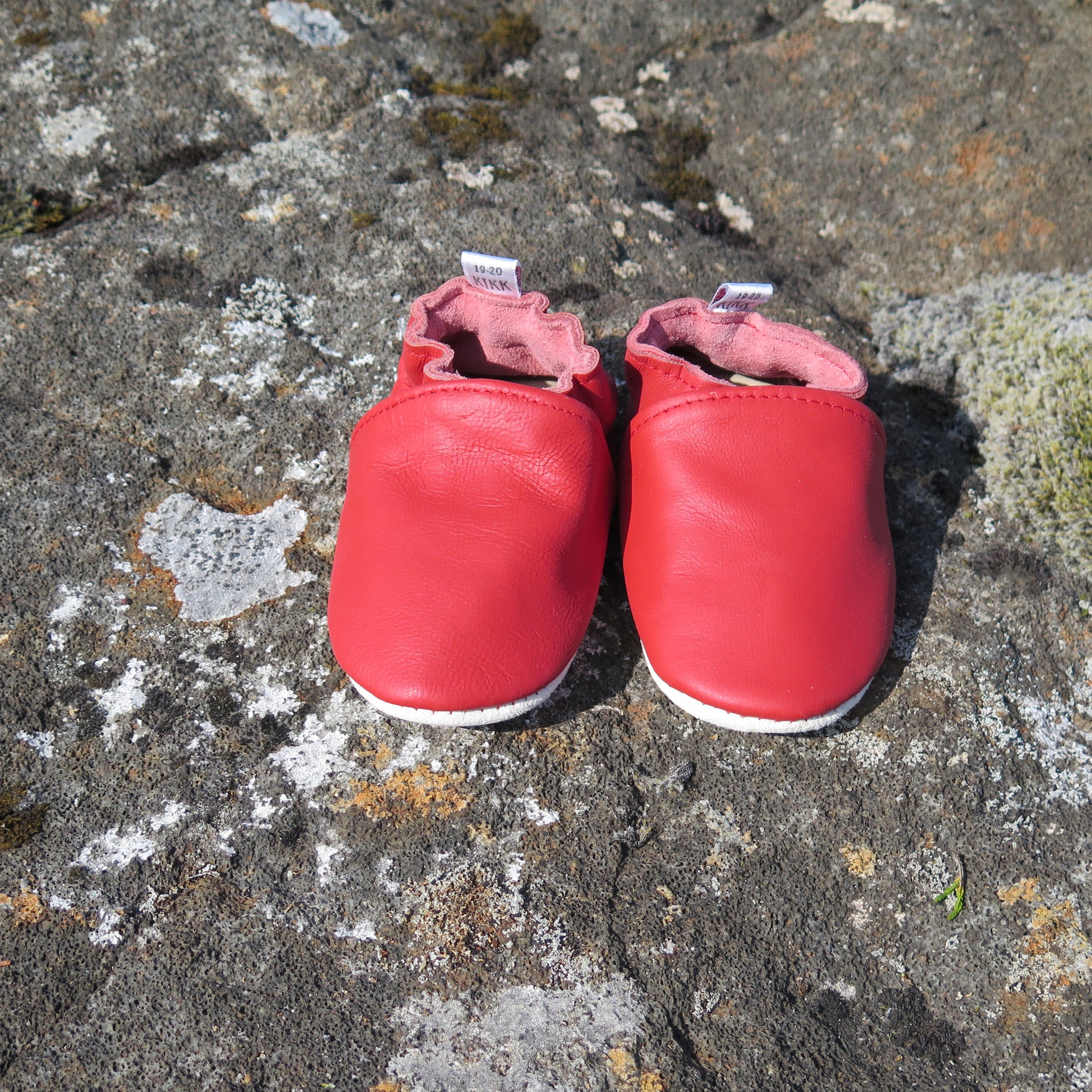 Leðurskór með mjúkum sóla. 3-9 mánaða – stærð 15-16 – 10,5 cm 6-12 mánaða – stærð 17-18 – 11,5 cm 9-18 mánaða – stærð 19-20 – 12,5 cm 1-2 ára – stærð 21-22 – 13,5 cm 1,5-3 ára – stærð 23-24 – 14,5 cm 2,5-4 ára – stærð 25-26 – 16,5 cm KIKK Reykjavík ungbarnaskórninr eru framleiddir úr mjúku geitaleðri. Þeir haldast vel á fæti og sólinn er stamur. Best er að hreinsa skóna með því að væta sólann og bursta rússkinnið varlega. Skóna má þrífa með blautri tusku.