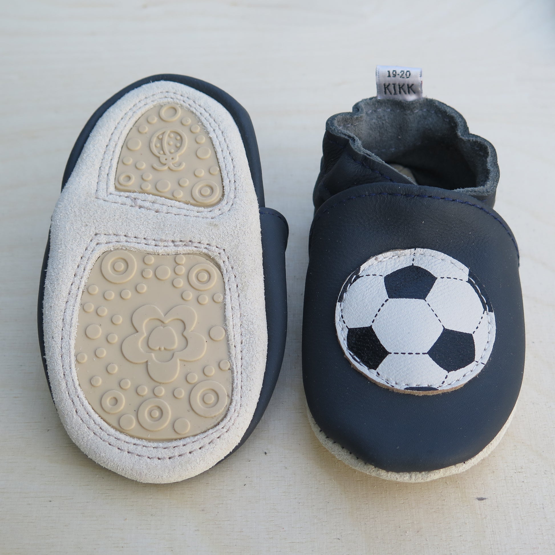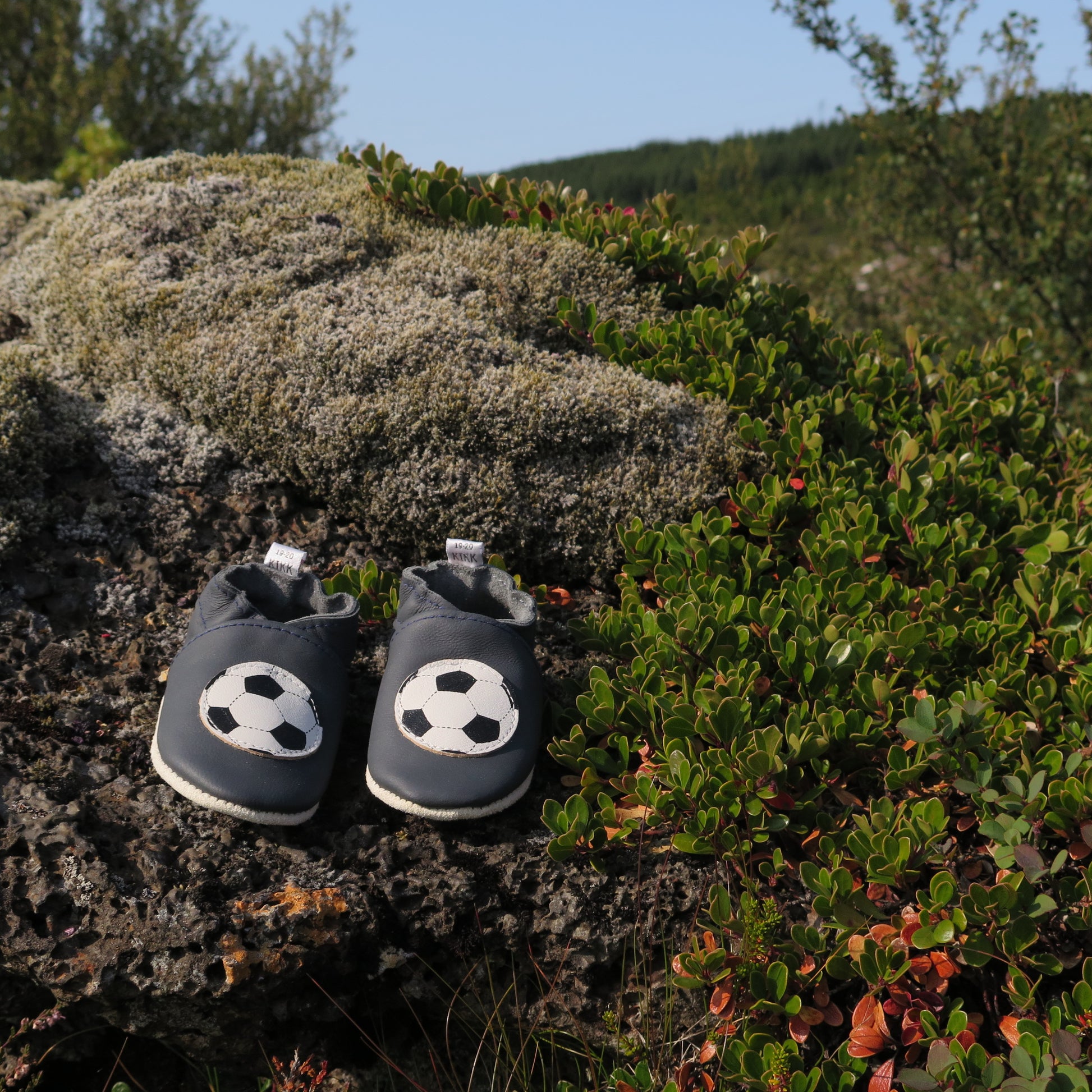 Leðurskór með gúmmí sóla. 6-12 mánaða – stærð 17-18 – 11,5 cm 9-18 mánaða – stærð 19-20 – 12,5 cm 1-2 ára – stærð 21-22 – 13,5 cm 1,5-3 ára – stærð 23-24 – 14,5 cm 2,5-4 ára – stærð 25-26 – 16,5 cm KIKK Reykjavík ungbarnaskórninr eru framleiddir úr mjúku geitaleðri. Þeir haldast vel á fæti og sólinn er stamur. Best er að hreinsa skóna með því að væta sólann og bursta rússkinnið varlega. Skóna má þrífa með blautri tusku.