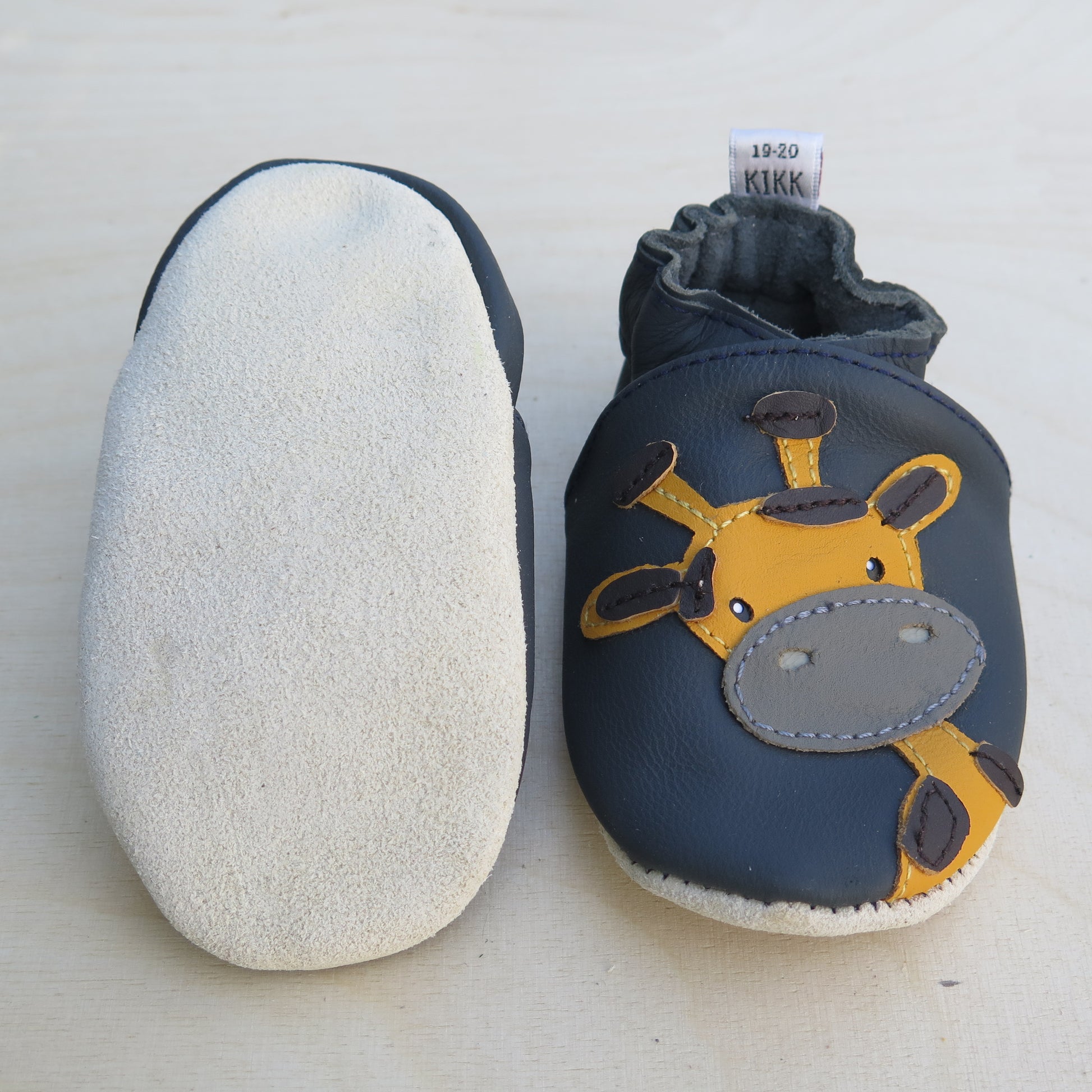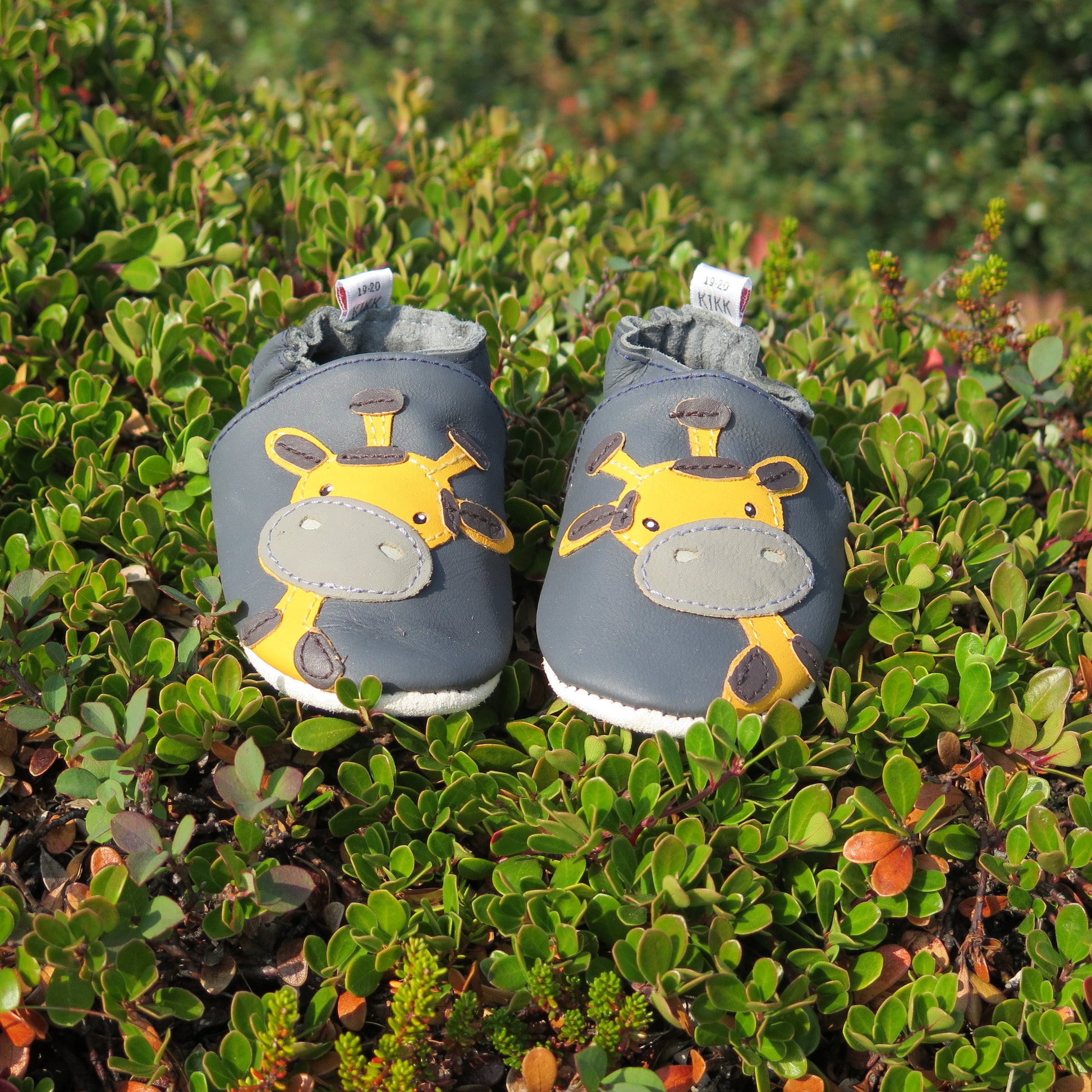 Leðurskór með mjúkum sóla. 3-9 mánaða – stærð 15-16 – 10,5 cm 6-12 mánaða – stærð 17-18 – 11,5 cm 9-18 mánaða – stærð 19-20 – 12,5 cm 1-2 ára – stærð 21-22 – 13,5 cm 1,5-3 ára – stærð 23-24 – 14,5 cm 2,5-4 ára – stærð 25-26 – 16,5 cm KIKK Reykjavík ungbarnaskórninr eru framleiddir úr mjúku geitaleðri. Þeir haldast vel á fæti og sólinn er stamur. Best er að hreinsa skóna með því að væta sólann og bursta rússkinnið varlega. Skóna má þrífa með blautri tusku.