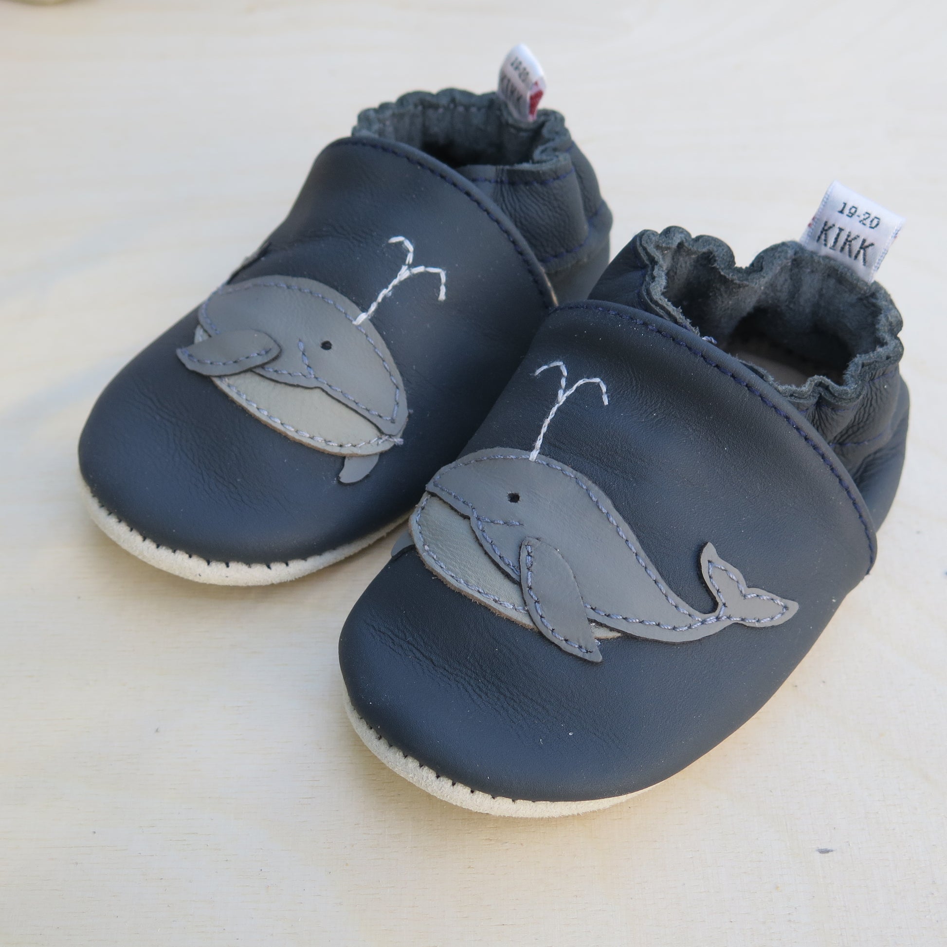 Leðurskór með gúmmí sóla. 6-12 mánaða – stærð 17-18 – 11,5 cm 9-18 mánaða – stærð 19-20 – 12,5 cm 1-2 ára – stærð 21-22 – 13,5 cm 1,5-3 ára – stærð 23-24 – 14,5 cm 2,5-4 ára – stærð 25-26 – 16,5 cm KIKK Reykjavík ungbarnaskórninr eru framleiddir úr mjúku geitaleðri. Þeir haldast vel á fæti og sólinn er stamur. Best er að hreinsa skóna með því að væta sólann og bursta rússkinnið varlega. Skóna má þrífa með blautri tusku.