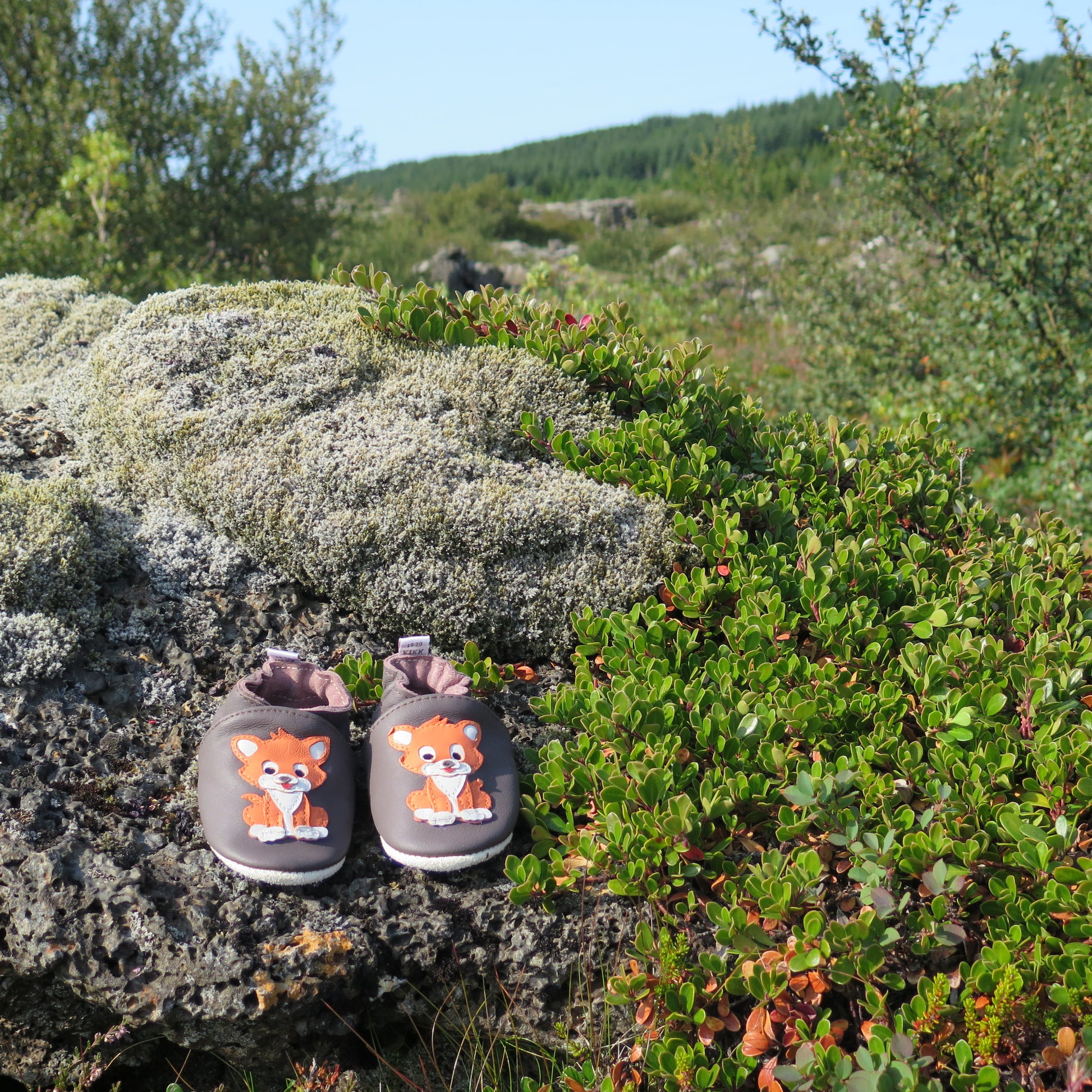 Leðurskór með mjúkum sóla. 3-9 mánaða – stærð 15-16 – 10,5 cm 6-12 mánaða – stærð 17-18 – 11,5 cm 9-18 mánaða – stærð 19-20 – 12,5 cm 1-2 ára – stærð 21-22 – 13,5 cm 1,5-3 ára – stærð 23-24 – 14,5 cm 2,5-4 ára – stærð 25-26 – 16,5 cm KIKK Reykjavík ungbarnaskórninr eru framleiddir úr mjúku geitaleðri. Þeir haldast vel á fæti og sólinn er stamur. Best er að hreinsa skóna með því að væta sólann og bursta rússkinnið varlega. Skóna má þrífa með blautri tusku.