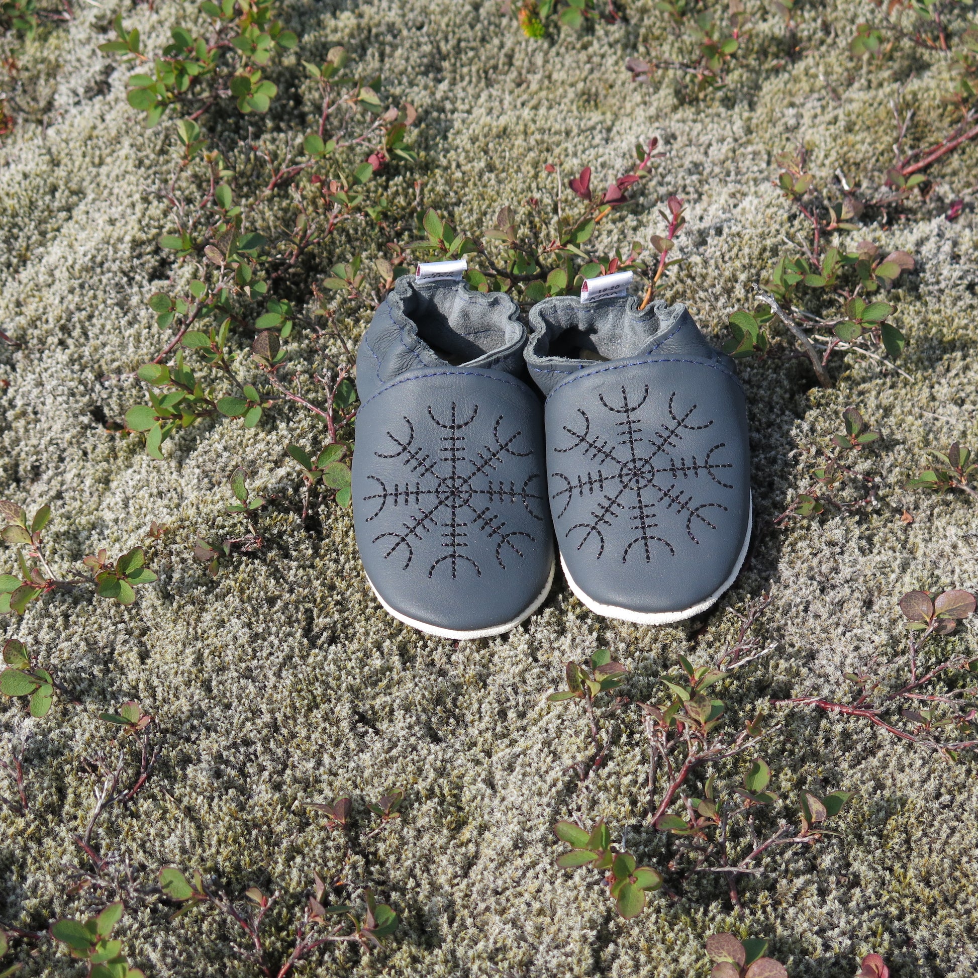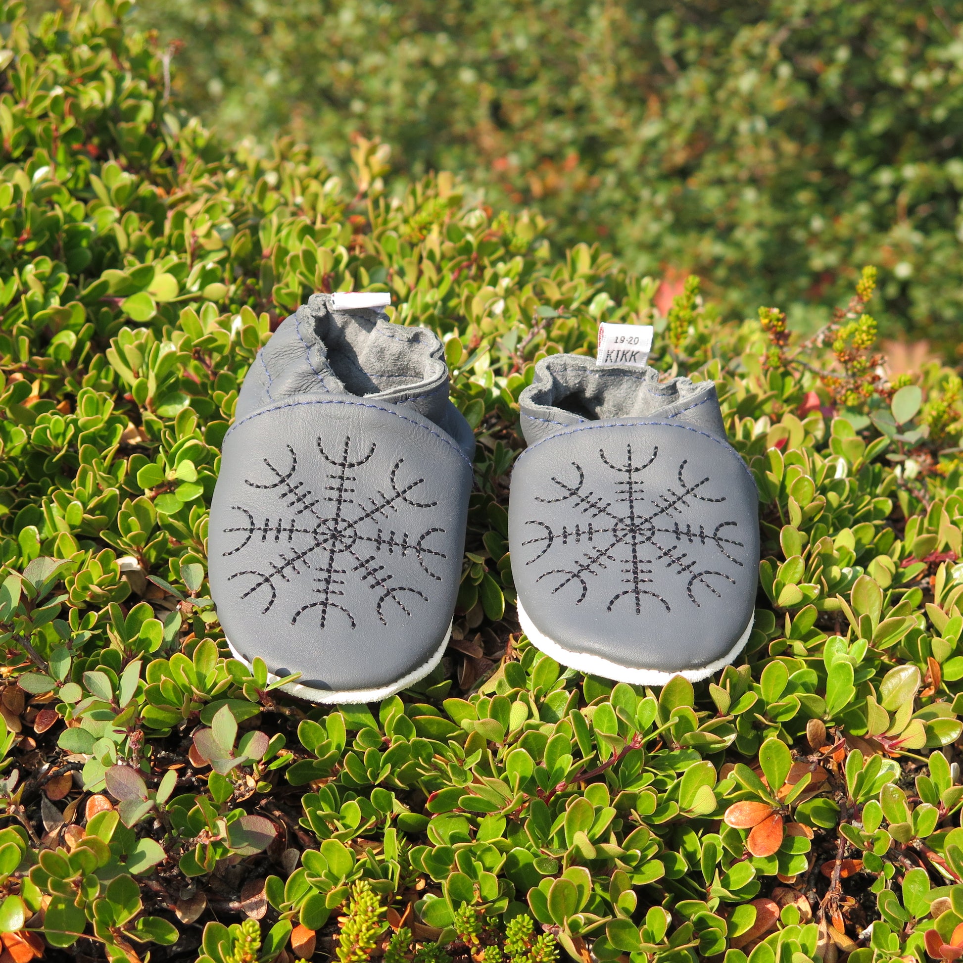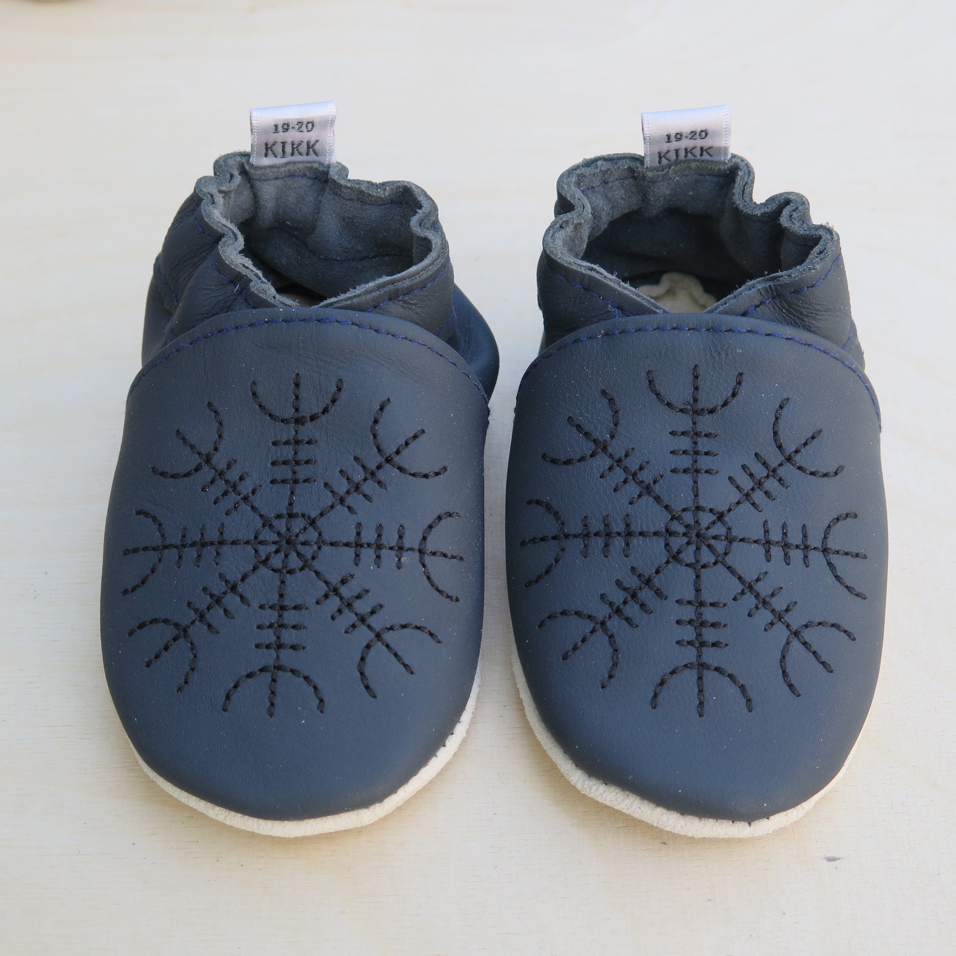Leðurskór með mjúkum sóla. 3-9 mánaða – stærð 15-16 – 10,5 cm 6-12 mánaða – stærð 17-18 – 11,5 cm 9-18 mánaða – stærð 19-20 – 12,5 cm 1-2 ára – stærð 21-22 – 13,5 cm 1,5-3 ára – stærð 23-24 – 14,5 cm 2,5-4 ára – stærð 25-26 – 16,5 cm KIKK Reykjavík ungbarnaskórninr eru framleiddir úr mjúku geitaleðri. Þeir haldast vel á fæti og sólinn er stamur. Best er að hreinsa skóna með því að væta sólann og bursta rússkinnið varlega. Skóna má þrífa með blautri tusku.